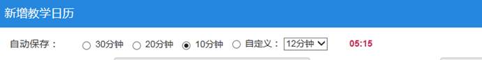 3.“新增教学日历”页面中“课程名称”“教学班信息”“总学时”“周学时”“起止周”“周次”及“上课日期”已根据教师的教学任务及课表信息自动生成,教师可自行设置教学日历自动保存时间。