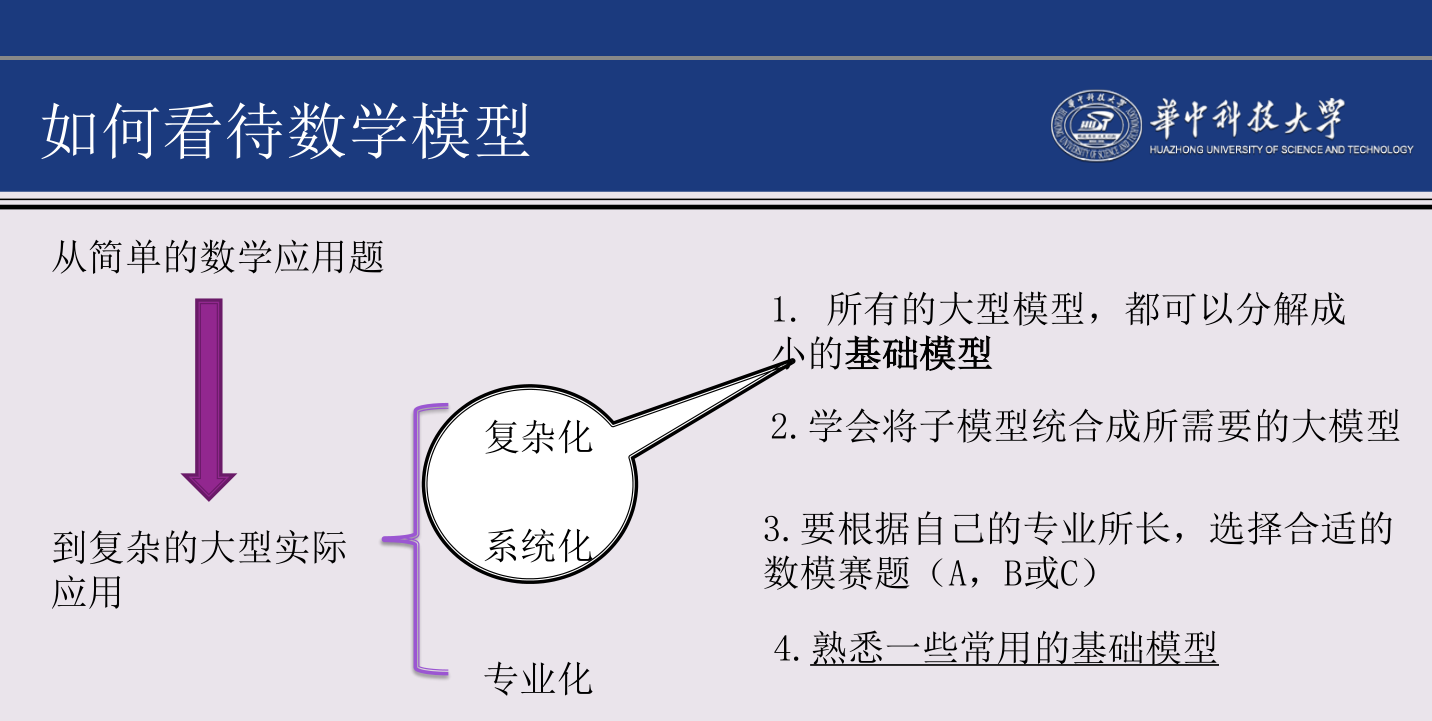 本次讲座,徐老师首先介绍了历年数学建模赛题概况,总结了数学模型建立的总体框架和过程。