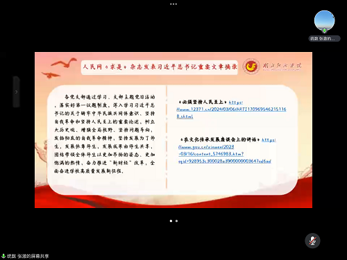 本网讯(通讯员:张澈、艾晨阳)2024年4月18日,球速体育员工第一党支部线上开展四月主题党日活动。本月党日活动的主题为“当好中国式现代化建设的坚定行动派、实干家”,参与人员为员工第一党支部全体党员、预备党员及发展对象。