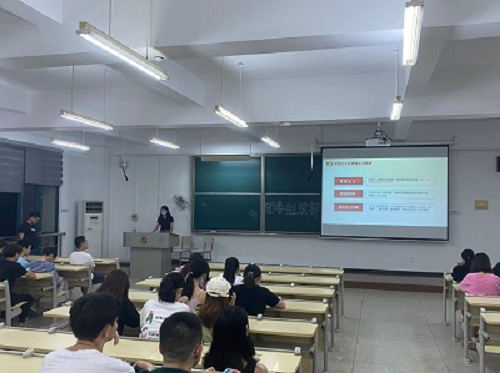 随后,宣讲人向同学们解释了缘何爱国,他指出爱国是一种理性、一种情怀、更是大家的追求。并鼓励大家努力学习,青春是用来奋斗的,应树立远大理想和追求。