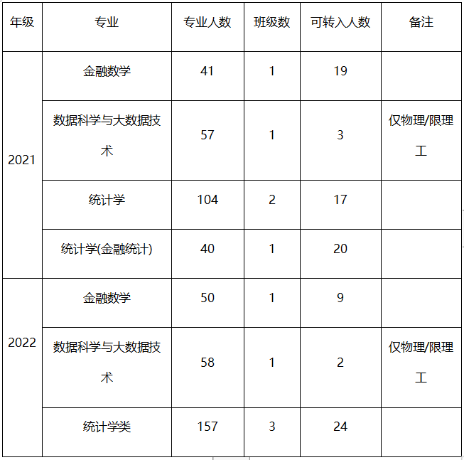 2021级员工转出比例原则上不超过本年级本专业人数的10%,2022级转出比例原则上不超过本年级本专业人数的30%。转入比例根据公司教学资源和现有班级容量确定,2021、2022级各专业可转入计划人数见下表: