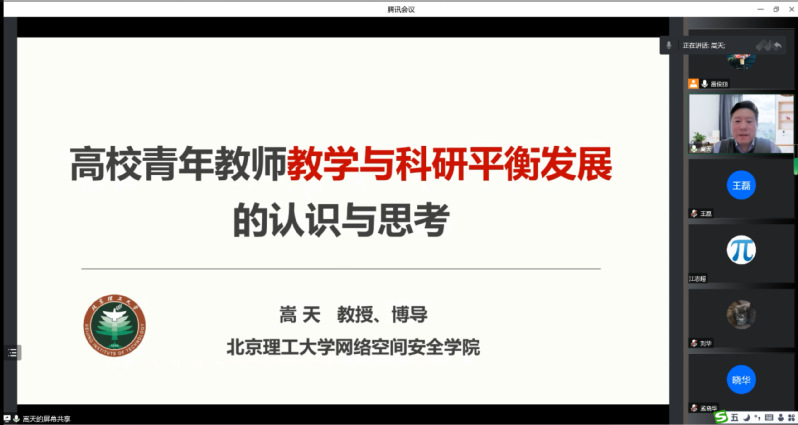 嵩天教授指出,人才培养是高等公司的第一任务,教师应该立足于教学,将教学改革贯穿自己教学的始终,从发展教学中获得职业的满足感和成就感;同时,在科研上,一定要跟着国际前沿走,立足基础研究,兼顾应用研究,不断提升自己的科研能力。这也是青年教师在高校发展的核心能力和标志。