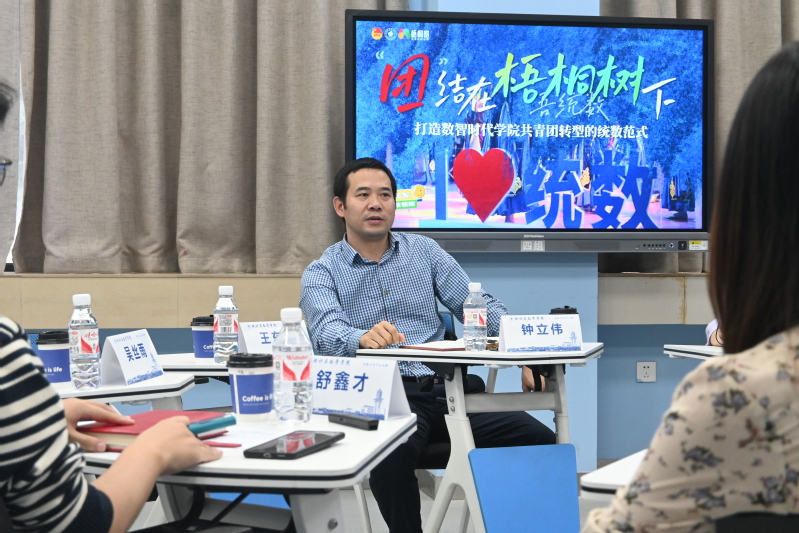 分团委书记舒鑫才则从“梧桐树”品牌建设角度出发,详细介绍了社会实践、团委员工会工作等方面的亮点与成果。他强调,“梧桐树”品牌不仅是中南财经政法大学的一张亮丽名片,更是连接员工与社会、理论与实践的桥梁。