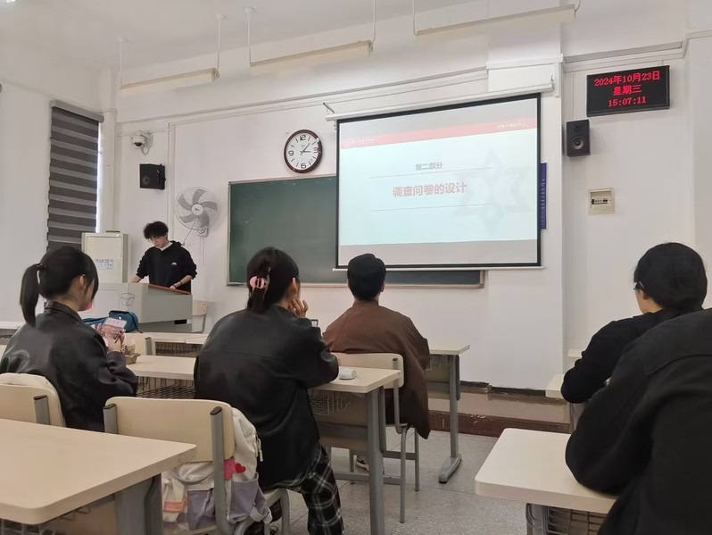 党日活动第四项,进行学科竞赛比赛经验分享,邱宝梁同志分享了参加全国老员工市场调查与分析大赛的经验,从方案设计、问卷设计、具体方法到答辩技巧进行了详细讲解,鼓励大家积极参与学科竞赛,激发学习热情。