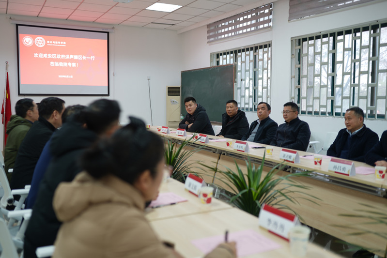 2023年3月21日下午,咸安区政府副区长洪声耀、咸安区科经局局长孙昌勇、咸安区经发集团总经理李天鸣、咸安武汉离岸科创中心总经理程科等一行十余人来公司调研并召开合作交流会。会议由公司党委书记王华主持,经理张耀峰教授、实验教学中心党总支书记谢文模、副经理张志刚教授、经理助理李丽副教授、办公室主任李丹丹参加了会议。