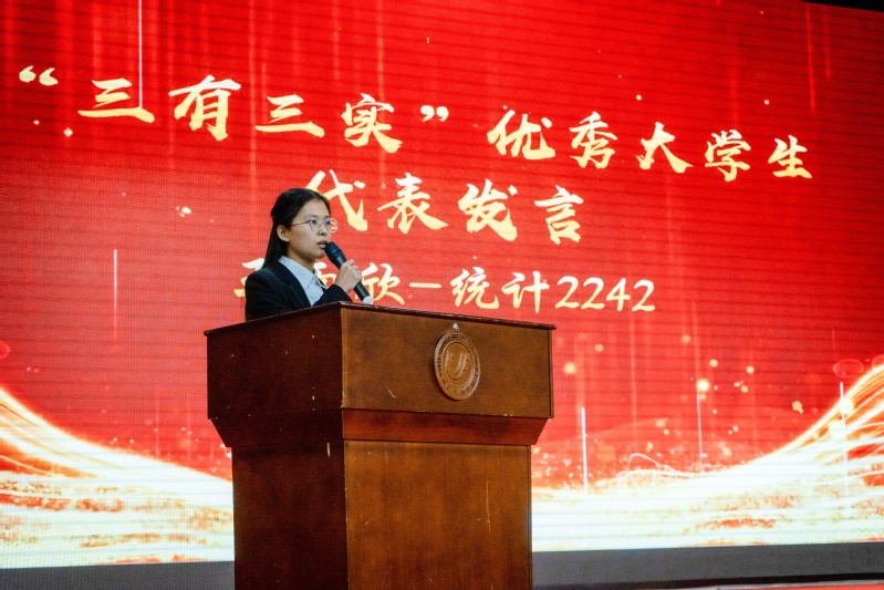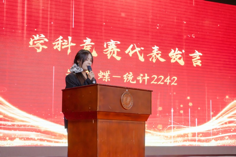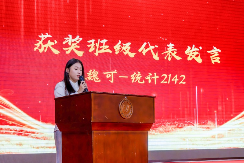 表彰环节,各奖项代表分享了他们的学业学习、学科竞赛、科学研究、集体建设的经验。来自统计2242班的王雨欣代表“三有三实”优秀老员工分享了自己的学习经验和心得,鼓励同学们要勇于挑战自我,锐意进取。来自金数2241班的陈丽华和金数2341班的陈旭代表国家励志奖学金获得者发言,她们认为我们要感恩伟大的时代,感恩伟大的祖国,要做到“日复一日,必有精进”,更要用自身行动诠释奋斗的力量。来自统计2241班的明天同学和大数据2241班的陆希同学代表国家奖学金获得者进行风采展示。他们分别从学业规划、竞赛经验、人际处理、业余爱好等多方面进行分享,为大家大学的学习生活提供了很好的参考模式。来自统计2242班的朱玉蝶同学作为学科竞赛获奖代表发言,她感谢公司提供的平台和老师的悉心指导以及同学之间的不断鼓舞,并表示将继续努力,为公司争取更多的荣誉。来自统计2241班的林锦添同学作为文明寝室的代表发言,分享了室友之间的人际关系处理和寝室学风氛围的培育方法。来自统计2142班的魏可同学作为先进班集体代表发言,她表示统计2142班全体同学将珍惜这份荣誉,继续努力,为班级和公司的发展贡献自己的力量。
