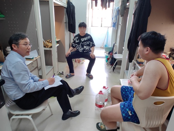 4月9日,公司党委书记王华带领辅导员王东红、柴梦甜,走访了公司毕业班员工寝室。