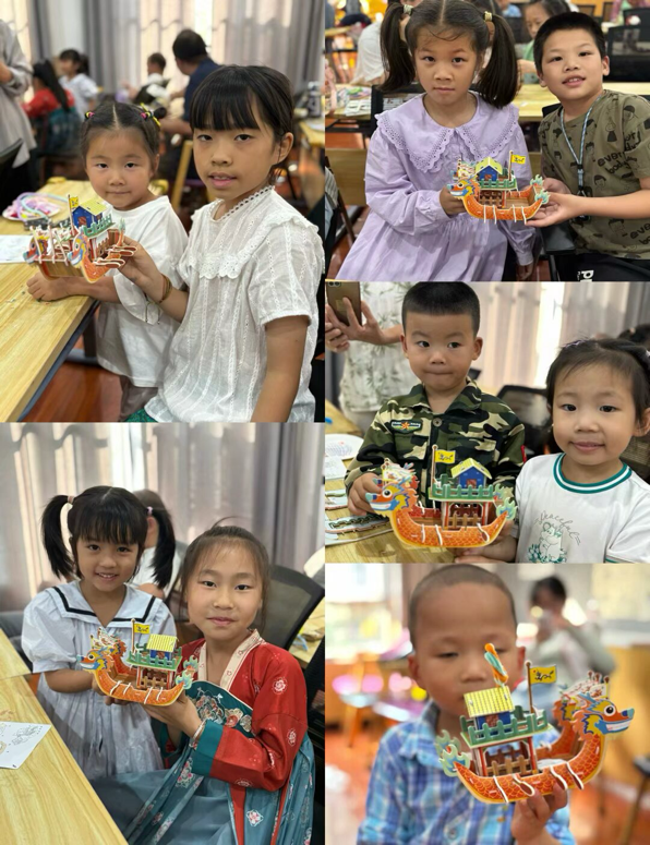 端午节临近,制作龙舟活动备受小朋友们喜爱。大家齐心协力,分工合作,认真地用材料进行拼贴。在大家的共同努力下,一艘艘精致的小龙舟逐渐成型。看着自己亲手制作的作品,小朋友们的脸上洋溢着自豪的笑容。最后小朋友们开心地举起自己的作品,相互展示、交流,现场氛围欢快。