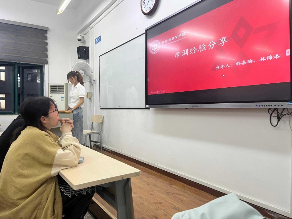 本网讯5月18日晚七点十五分,球速体育“知行领学”系列活动第六期——市调经验分享会在J2-215顺利举办。本次分享会特邀统计2241班韩嘉瑜、林锦添两位同学担任主讲人,面向全体统计2441班同学开展,主要围绕大赛备赛经验展开深度交流,为学弟学妹们提供了极具参考价值的参赛指导。