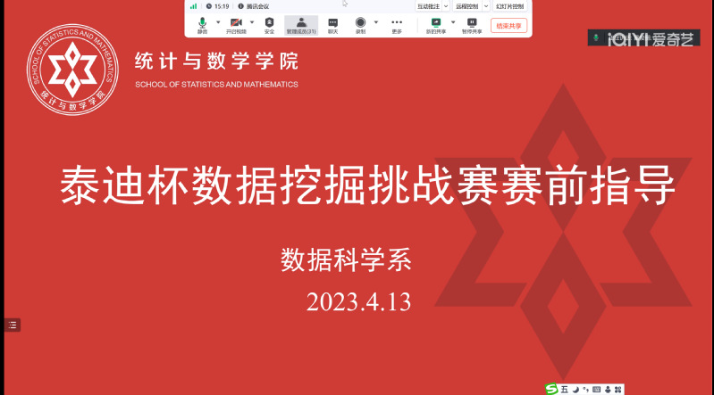 会上,张志刚教授讲解了本次竞赛的B题“产品订单的数据分析与需求预测”的题目要点和解题思路,并向参赛同学推荐了相应的网络学习资源;胡凡博士针对C题“泰迪内推平台招聘与求职双向推荐系统构建”,逐小题讲解了题目涉及的知识点和解题注意事项,并提供了部分伪代码供参赛同学学习。