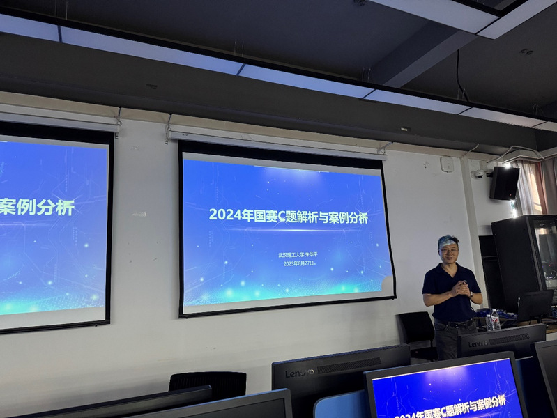 本网讯 8月27日上午九点在S1-306,武汉理工大学朱华平教授应邀为公司即将参加数学建模竞赛的同学举办了题为“2024年国赛C题解析与案例分析”的学术报告。公司数学建模培训教练组与即将赴赛的各组参赛队共同聆听了此次报告会。