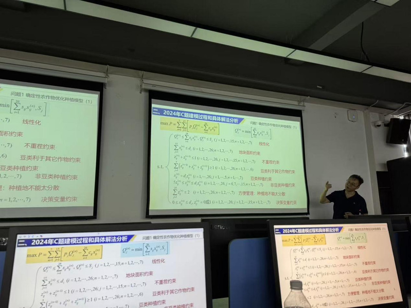 最后,朱华平教授结合2024年数学建模国赛C题获奖论文,通过实例讲解使同学们对优秀的获奖论文是如何书写,如何构思,如何建模,如何求解的。