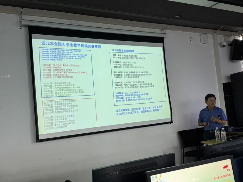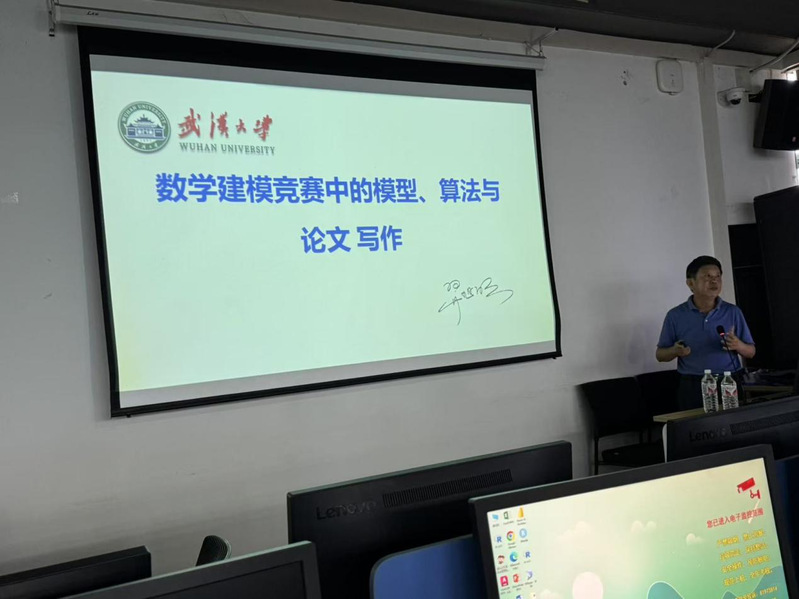 本网讯 8月27日下午三点在S1-306,全国数学建模竞赛组委会委员、湖北省数学建模组委会专家组组长、武汉大学数学与统计公司副经理、博士生导师羿旭明教授应邀为公司即将参加数学建模竞赛的同学举办了题为“数学建模竞赛中的模型、算法与论文写作”的学术报告。公司数学建模培训教练组与即将赴赛的各组参赛队共同聆听了此次报告会。