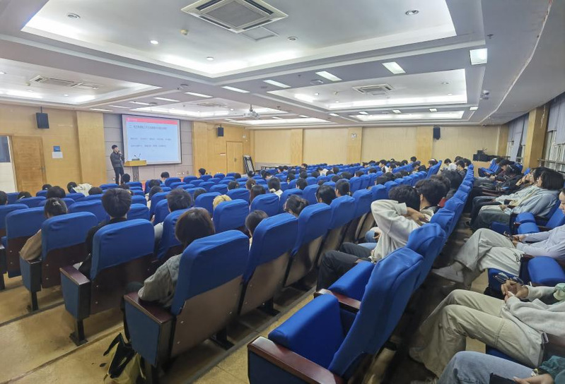 2025年10月18日17点30分,由金融数学专业主办、统数公司员工会学习部承办的“金融数学专业优秀毕业生返校分享会”在三号报告厅圆满举行。来自金融数学专业的4名优秀员工返校与一二三四年级的金融数学专业的员工做就业与考研交流会,现场互动氛围热烈。4位学长有的以参加工作后过来人的身份叮嘱学弟学妹们在公司期间应该学好哪些课程,锻炼和掌握哪些技能应对如今面临的就业形势,有的学长则以在校期间积极备考研究生心得体会与大家分享考研心路历程。