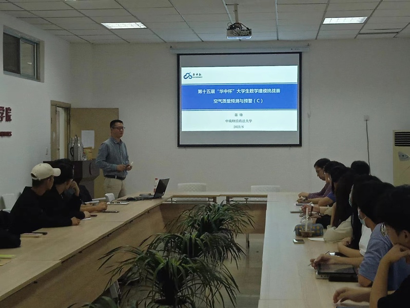 6月5日下午4:00知行楼A栋106会议室,中南财经政法大学蒋锋教授应邀为公司参加了“华中杯”数学建模竞赛和即将参加全国老员工数学建模竞赛的同学举办了题为“华中杯C题空气质量预测与预警解题思路”的学术报告。公司数学建模培训教练组与有意参加本年度全国老员工数学建模竞赛的同学共同聆听了此次报告会。