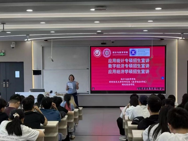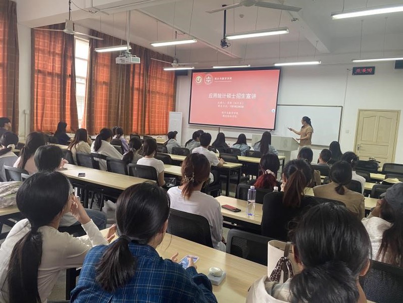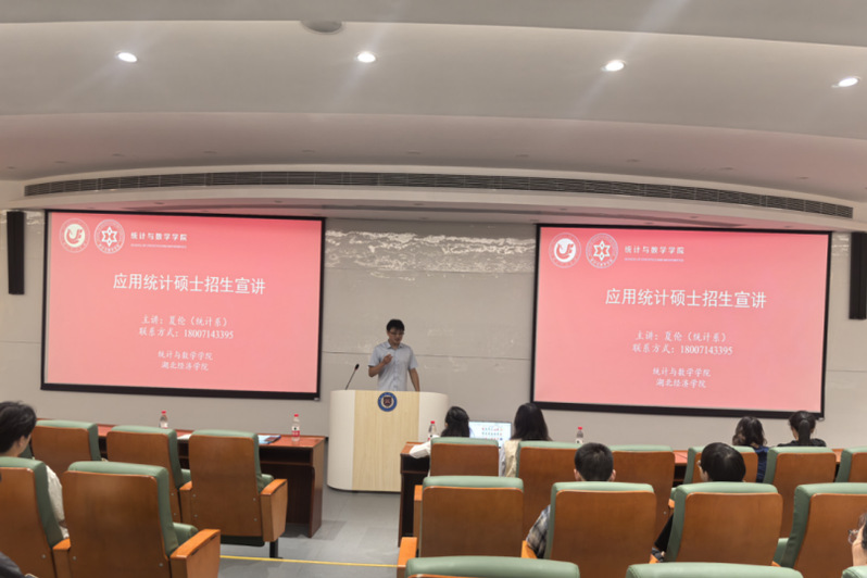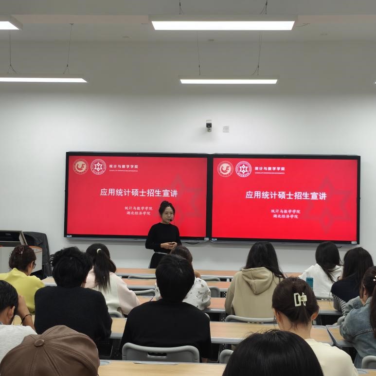 (撰写人李倩,审稿人:王磊)为吸引优质生源、深化校际学术交流,助力2025年应用统计硕士招生工作高质量推进,公司组织夏伦、李倩、黄小舟、杨珂玲、叶提芳、卢米雪、孟雪井、祝丹等多位教师组成宣讲团队,先后赴湖北商贸公司、武汉体育公司体育科技公司、武昌工公司、湖北第二师范公司、武汉公司、武昌首义公司、湖北民族大学、法商公司等十余所院校,开展应用统计硕士专场招生宣讲活动。