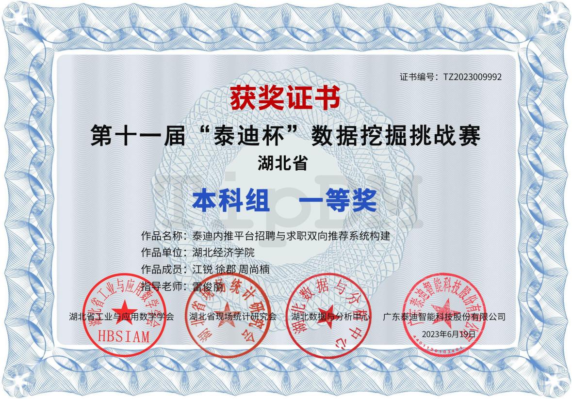1 | 徐郡、周尚楠、江锐 | 全国一等奖、湖北省一等奖 | 雷俊丽 |