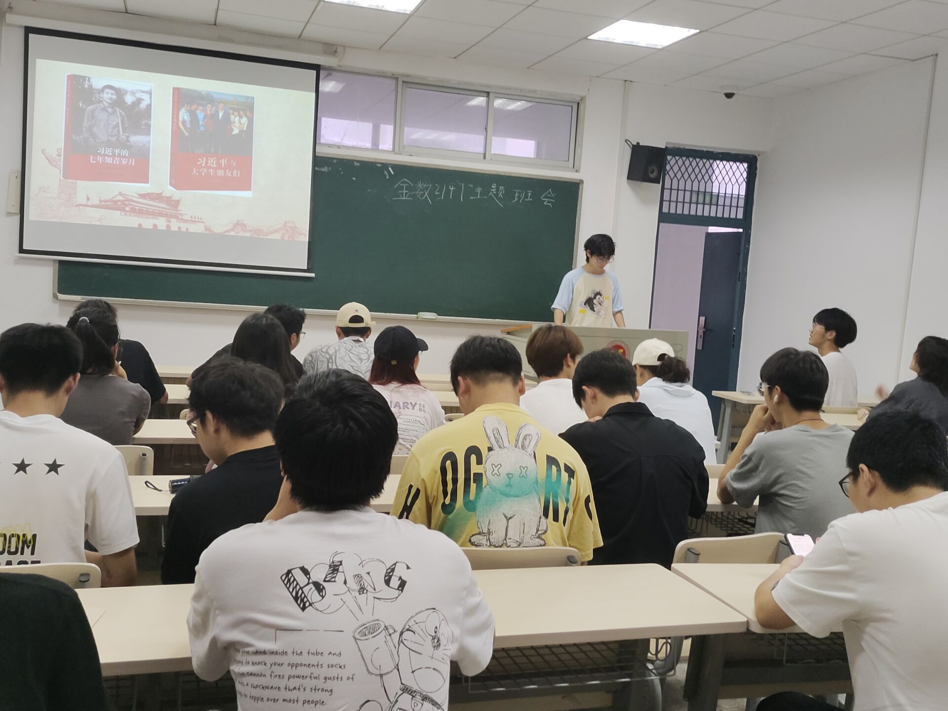 图为统计2243班、大数据2241班班主任吴丝雨老师开展总书记与老员工故事分享