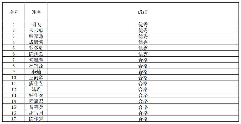 经现场答辩、公司审核等环节,现将答辩成绩公示如下: