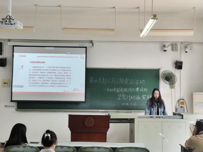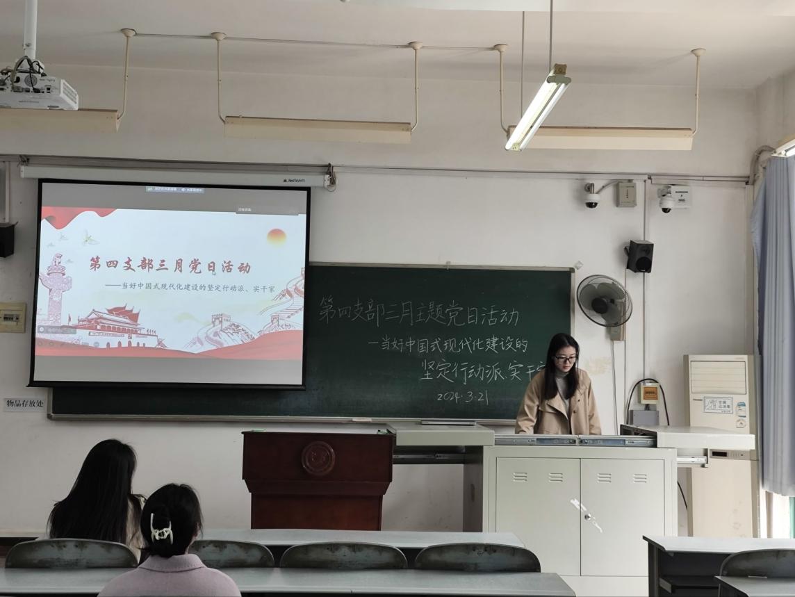 本网讯(通讯员:陈冰洁)2024年3月21日,球速体育员工第四党支部在教1-311开展了三月主题党日活动,本次活动主题为"当好中国式现代化建设的坚定行动派、实干家”,由吴靖文同志主持,参会人员为员工第四党支部全体党员和发展对象。