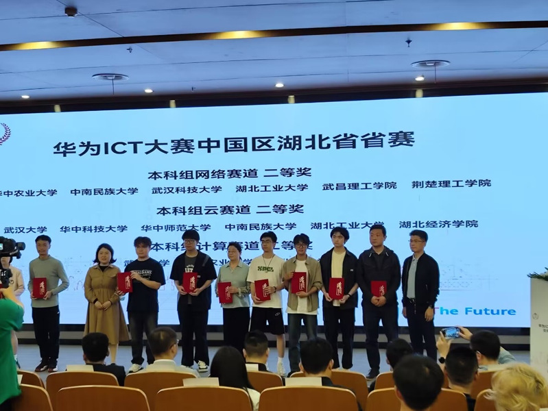 4月20日下午,2023-2024年度华为ICT大赛湖北省省赛颁奖典礼在华中师范大学隆重举行,我院获奖团队代表江锐、陶晶莹、邹冰倩、陈迪欢等同学在胡凡老师的带领下参加了此次盛会。